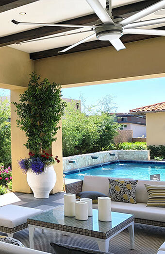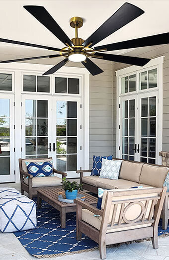 Installation of weatherproof, IP-rated ceiling fans for decks, patios, and verandas, built to withstand humidity and coastal conditions.